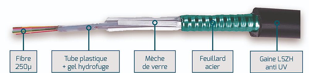FIBRE OM3 12 FO EXT. LSZH STRUCTURE LIBRE 250µ ANTI RONGEUR ARMÉE ACIER