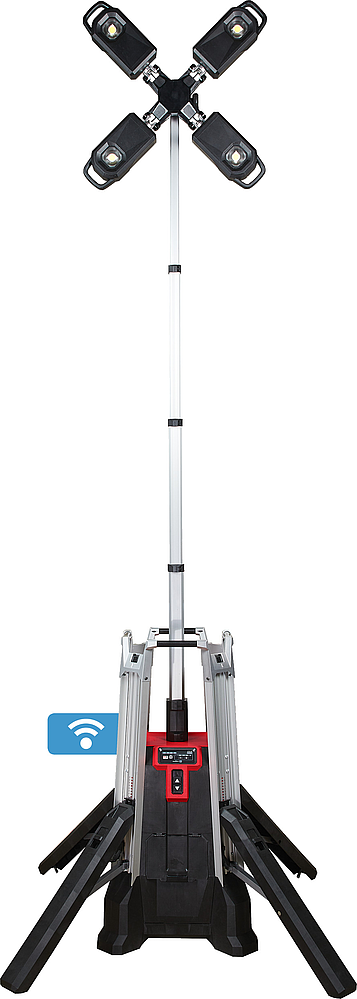 MX FTL-601 - Tour d'éclairage MX FUEL, 27 000 Lumens, alimentation hybride chargeur ou secteur, mât motorisé de 3,1m, Trueview Technologie, une batterie 6Ah - Carton, 1 batterie MXF XC406
