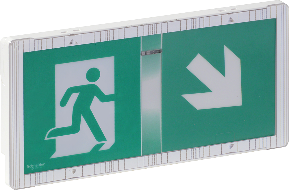 BAES évacuation, autonomie 1h, type MATRIX Dynamique Actif, CGLine+, IP42. Pictogramme électronique paramétrable, sens d’évacuation Dynamique Actif qui s’adapte en temps réel en fonction du scénario. Fonction Dynamique incluse. IP42 / IK08